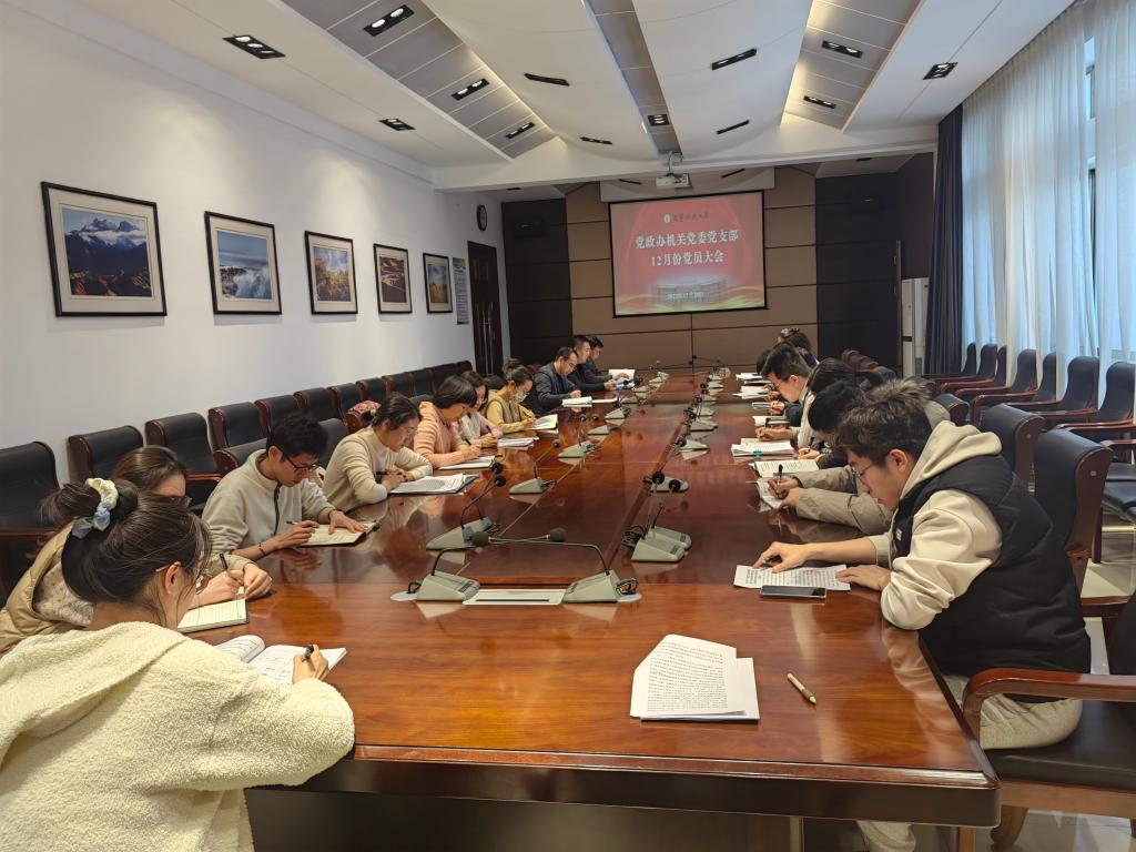 12月20日下午,党政办机关党委党支部在机关楼421会议室召开党员大会,开展“读看思研”活动和集体学习。党支部书记李宁主持会议,校党委书记李平以普通党员身份参加会议。