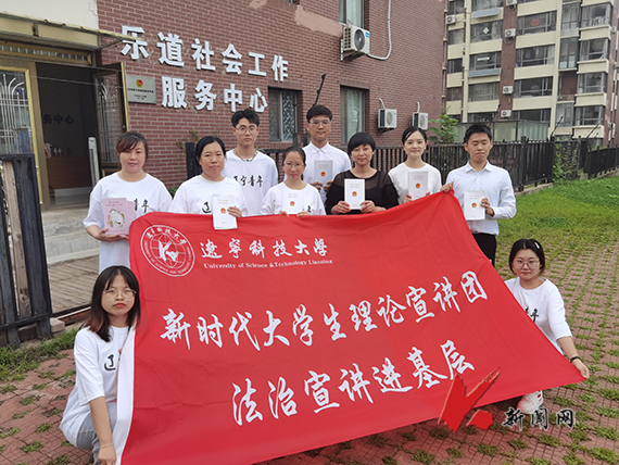 近日,鞍山团市委、时博足球_时博(中国)团委与鞍山市呼吸联盟志愿者协会联合开展“法治宣讲进基层”活动,时博足球_时博(中国)新时代大学生理论宣讲团采用线上线下相结合的形式深入企业、社区进行普法宣传、法律咨询、法律服务。