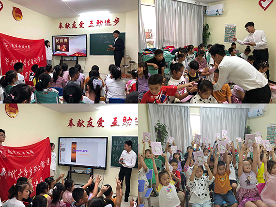 8月18日,时博足球_时博(中国)新时代大学生理论宣讲团走进鞍山市高新区乐道社区,面向社区居民及小学生宣讲《中华人民共和国民法典》和《中华人民共和国未成年人保护法》。宣讲团成员经济与法律学院学生白钰仟详细介绍了《民法典》中有关未成年人权益保护的财产权利、家庭权利、自由和人格尊严的部分内容,并以案例讲解的形式着重宣讲了《民法典》新增亮点。宣讲团成员经济与法律学院学生王圣傑结合生活中的实际案例讲解了《未成年人保护法》相关法律知识,强调了家庭、学校、社会在未成年人保护方面应承担的责任和义务,也使小朋友们更加清楚地了解自己享有哪些权利,掌握正确保护自身权益的方式方法。宣讲员宣讲内容贴近生活,图文并茂、生动有趣,与现场的小朋友们频繁互动,赢得了阵阵掌声,并将《中华人民共和国未成年人保护法》送到小朋友们手中。