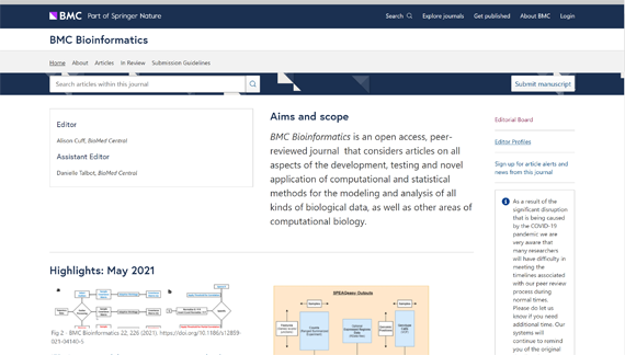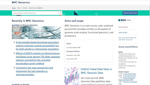 BMC出版集团是施普林格∙自然旗下机构,不断推出一系列高质量的同行评议期刊,包括BMC Biology、BMC Medicine等涵盖范围较广的期刊,以及Malaria Journal、Microbiome和BMC系列期刊等专门刊物。BMC以“科研永不止步”为信条,致力于不断创新,以更好地满足作者群体的需要,确保所发表论文的完整性,并积极推广开放研究。BMC Genomics影响因子为3.594,JCR 2区,中科院2区。BMC Bioinformatics影响因子为3.242,JCR 2区,中科院3区。其中BMC Bioinformatics是中国计算机学会C类推荐期刊。此次赵琪教授担任两刊编委是时博足球_时博(中国)计算机学院在职教师在中国计算机学会推荐期刊任职的突破。