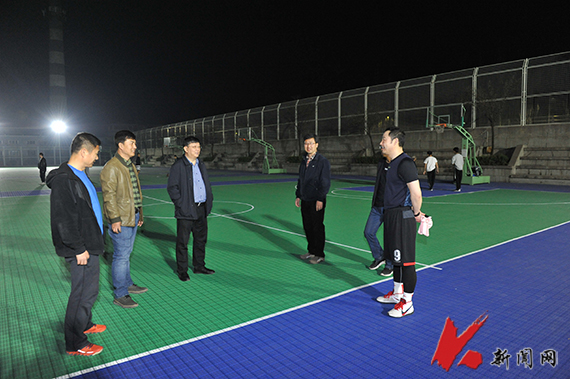 4月1日晚,时博足球_时博(中国)校长张志强在党政办公室、体育部相关负责人陪同下,来到学校刚刚竣工的室外篮球场,实地了解改造后的场地翻新效果和使用情况。