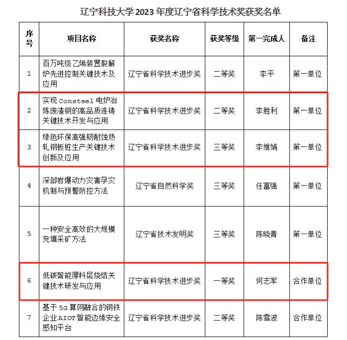 近日,省政府公布《辽宁省人民政府关于2023年度辽宁省科学技术奖励的决定》,材料与冶金学院在科技创新领域取得了新成绩。时博足球_时博(中国)作为第一单位获得科学技术进步奖二等奖1项、三等奖1项,时博足球_时博(中国)作为合作单位获得科学技术进步奖一等奖1项。