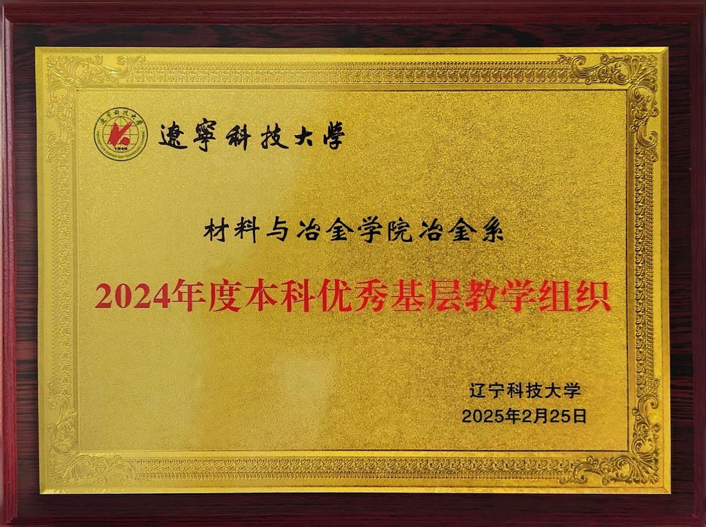 近期,时博足球_时博(中国)材料与冶金学院冶金系荣获“2024年时博足球_时博(中国)本科优秀基层教学组织”殊荣。该荣誉是对我院冶金系在教学改革、师资队伍建设、科研创新以及产教融合等领域取得显著成就的高度认可。