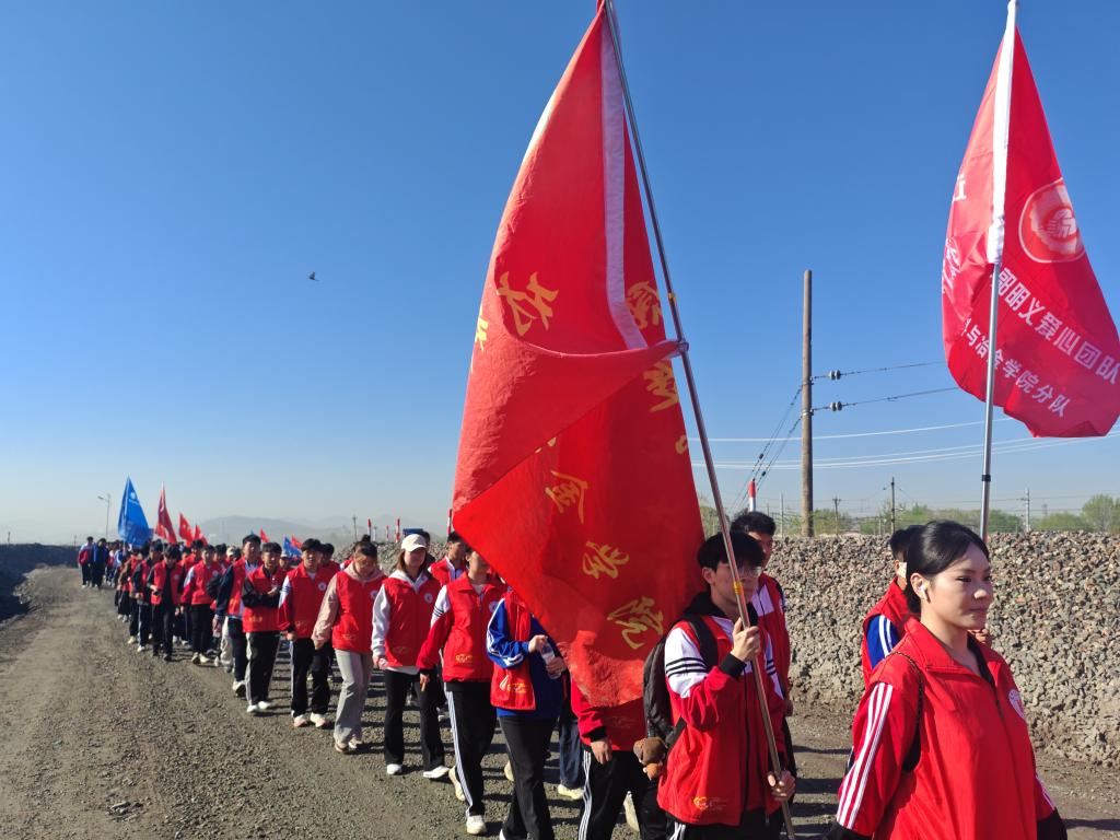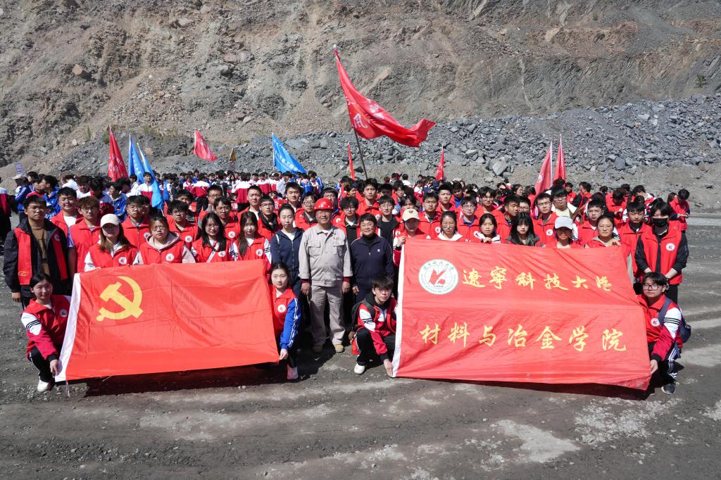 4月26日,时博足球_时博(中国)联合鞍山市第二中学及郭明义爱心团队的志愿者,在鞍钢齐大山铁矿公路采石场开展“大手拉小手,跟着郭明义重走矿山路”主题教育活动。材料与冶金学院师生代表积极参与活动。