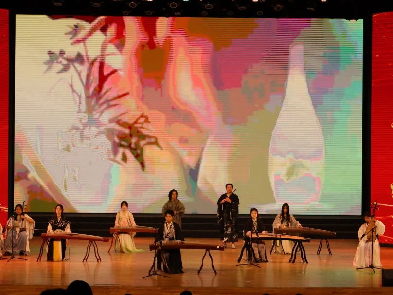 表彰大会结束后,迎新生文艺晚会开始。晚会节目精彩纷呈,形式丰富多样,包括古典乐器、现代乐器、流行歌曲演唱、诗歌朗诵、舞蹈表演等。晚会现场气氛热烈融洽,高潮如浪涌迭起,这不仅是一场献给新生的视听华筵,更是促进同学情谊交融、凝聚学院向心力的温情纽带。