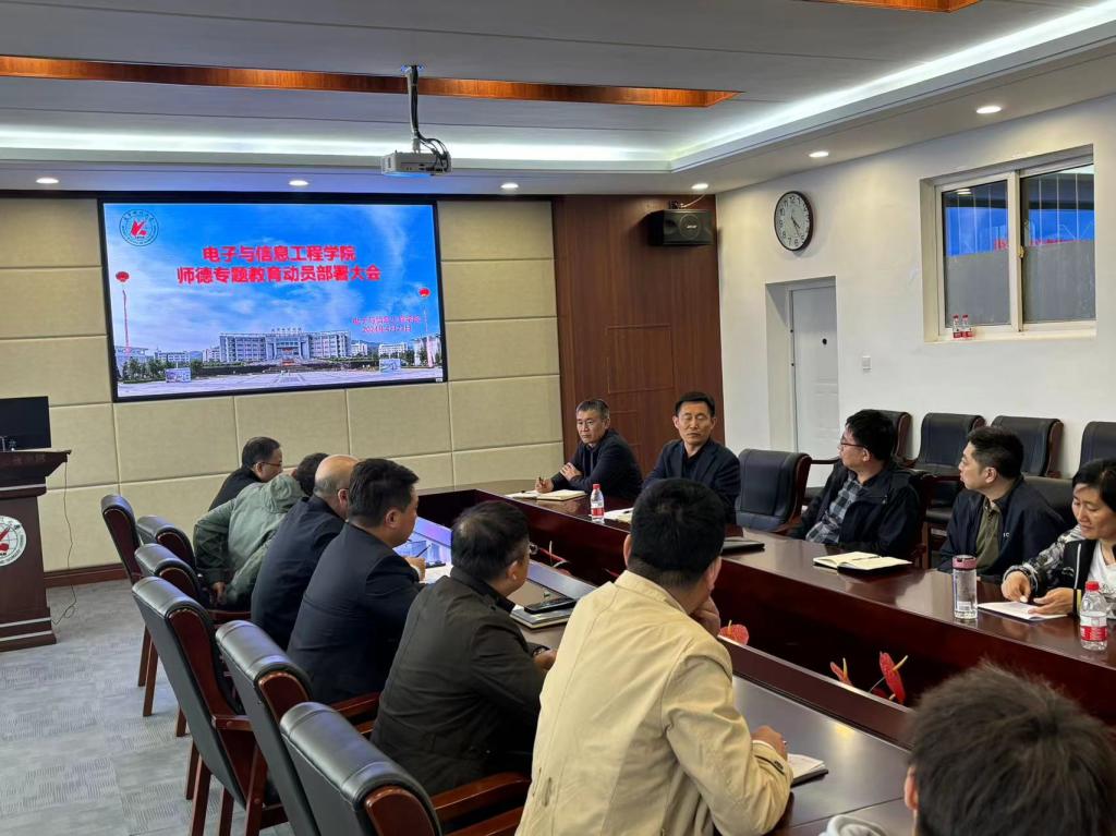 4月23日下午,电子与信息工程学院召开师德专题教育动员部署大会,学院班子成员、系(中心)主任、党支部书记、科级以上干部及学生代表参加会议。