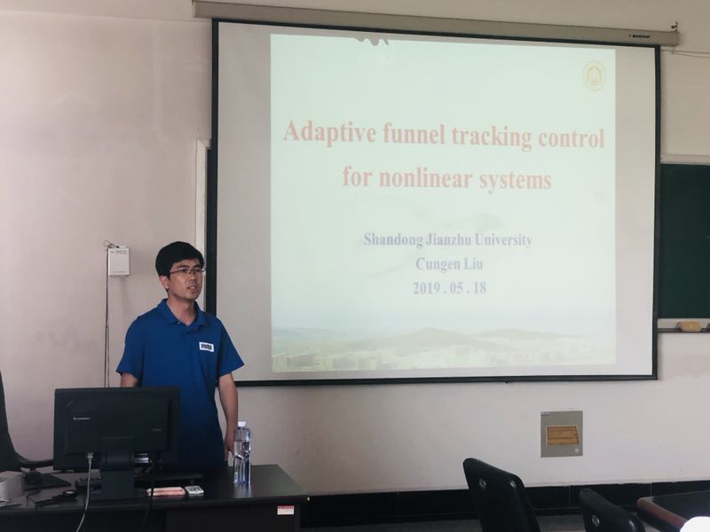 2019年5月18日,应电信学院邀请山东建筑大学刘存根副教到电信学院进行学术交流,在交流会上刘存根副教授为与会师生作了题为“Adaptive funnel tracking control for nonlinear systems”的学术报告。