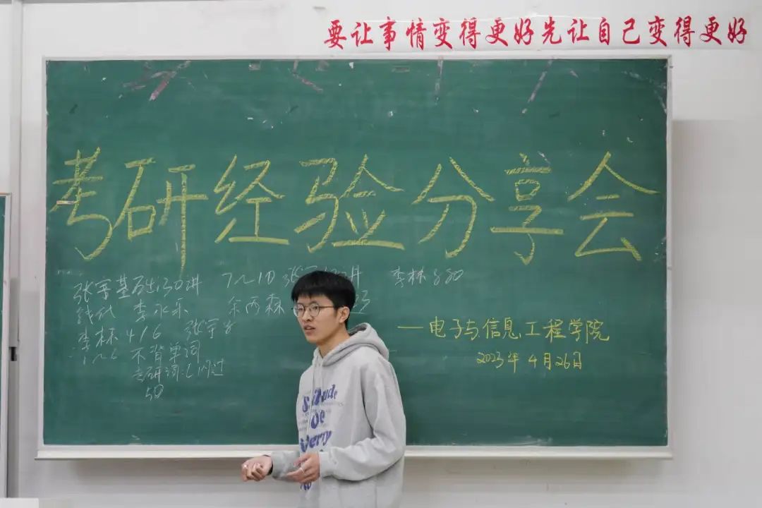 为帮助学生认清当前考研新形势,明确考研目标,掌握相关考研技巧,增强考研信心,电信学院于4月26日在博闻楼五合教室召开考研经验分享会。此次活动由19级考研成功的学生代表主讲,20、21级准备考研学生共计200余人参加会议。
