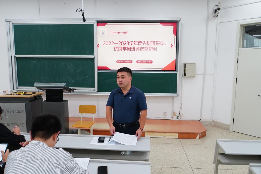 为进一步落实学校党委学生工作部三比一促一传承活动有关部署,加强班级建设,增强班级凝聚力,营造良好的学习氛围,展现班级风采,电信学院于927日召开了2022-2023学年度先进班集体、优良学风班评选答辩会,此次活动由学院学生会执行主席刘城旭主持,全体辅导员担任评委。