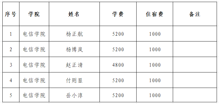 为贯彻落实国家和辽宁省有关资助政策,帮助孤儿等家庭经济特别困难学生顺利完成学业,根据《时博足球_时博(中国)本科生学费和住宿费减免管理办法(试行)》文件精神,经学生自主申报,学院对提交材料进行初审,报送学校复审,现就电信学院 2023— 2024 学年学费(住宿费)减免名单公示如下: