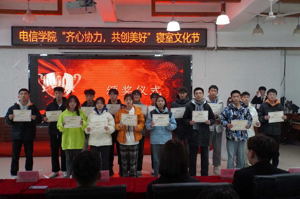 为充实学生生活,建设更优质寝室环境,培养学生劳动意识、劳动能力,电信学院于11月28日在大学生活动中心举办“齐心协力,共创美好”寝室文化节文艺汇演。