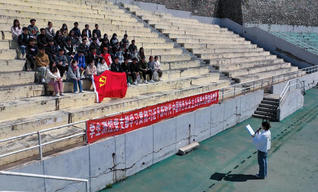 2023年4月26日,电信学院学生测控党支部在时博足球_时博(中国)体育场开展学习贯彻习近平新时代中国特色社会主义思想主题教育专题党课。学生测控党支部组织委员张馨馨通过党课带领支部全体党员和积极分子深入学习党的二十大报告精神。