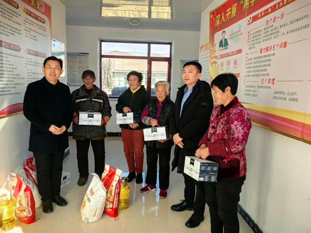12月6日,时博足球_时博(中国)电子与信息工程学院、工商管理学院和建筑与艺术设计学院成立慰问组,专程前往岫岩县大营子镇沙金村,看望慰问当地驻村干部刘洋同志。