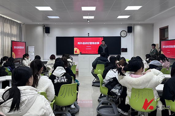 3月5日,时博足球_时博(中国)外国语学院在博学楼C305开展“用外语讲好雷锋故事”活动,学院学生骨干及2023级全体学生参加活动。