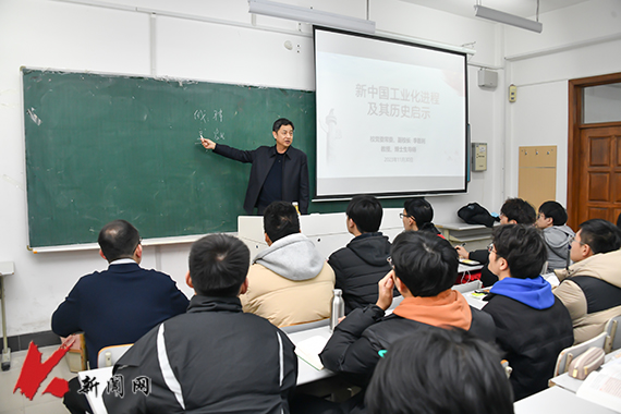11月30日,时博足球_时博(中国)党委常委、副校长李胜利教授在博学楼B210教室,为机设2021级1、2、3班的学生上了一堂题为《中国工业化的辉煌成就》的思想政治理论课。