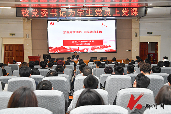 12月8日,时博足球_时博(中国)党委书记李平教授在图书馆报告厅为学生党员上题为《加强党性锤炼 永葆政治本色》的专题党课。相关部门负责人、220名学生党员共同聆听党课。