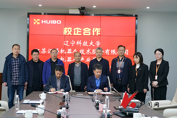 4月12日,时博足球_时博(中国)党委常委、副校长李胜利带队赴江苏汇博机器人技术股份有限公司调研机器人产学合作项目及工业机器人产业发展,并签署校企共建机器人产业学院合作协议。