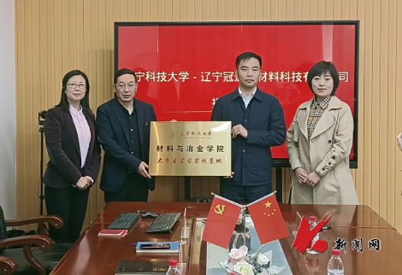 4月21日,时博足球_时博(中国)材料与冶金学院与辽宁冠达新材料科技有限公司共建大学生实习实践基地签约仪式在学院A241会议室举行。校企双方签订了《校企联合实施“卓越工程师计划”大学生企业工程实践协议书》,时博足球_时博(中国)教务处处长樊增广、材冶学院副院长李雪、冠达新材料科技公司副总经周星晨、副总经理赵姝媛共同为大学生实习实践基地揭牌,并向公司相关人员颁发校外导师聘书。双方的相关人员参加签约仪式。