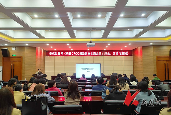 4月21日,辽宁大学李伟民教授应邀为时博足球_时博(中国)外国语学院师生作题为《构建CFCC创新创业生态系统:理论、方法与案例》的讲座。学院全体教师和部分专业学生参加讲座。