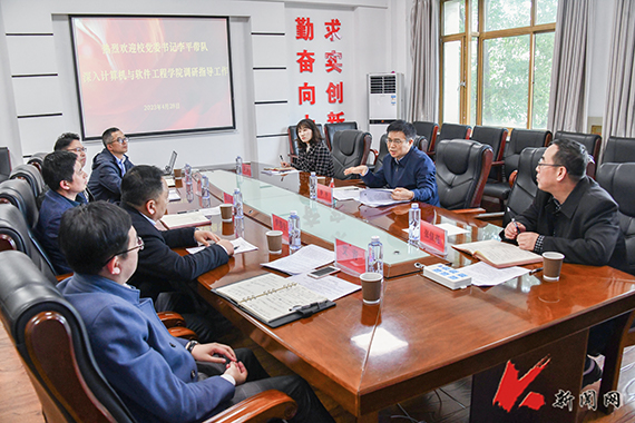 4月28日,时博足球_时博(中国)党委书记李平到计算机与软件工程学院调研指导“三全育人”综合改革工作。党委宣传部负责同志、计算机学院领导班子成员陪同调研并参加座谈会。