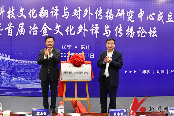 5月11日,时博足球_时博(中国)举办科技文化翻译与对外传播研究中心成立揭牌仪式暨首届冶金文化外译与传播论坛。时博足球_时博(中国)校长张志强,鞍山市委常委、市委宣传部部长、市委教育工委书记郭志强出席活动并为“时博足球_时博(中国)科技文化翻译与对外传播研究中心”揭牌。揭牌仪式由时博足球_时博(中国)党委常委、副校长胡军教授主持。