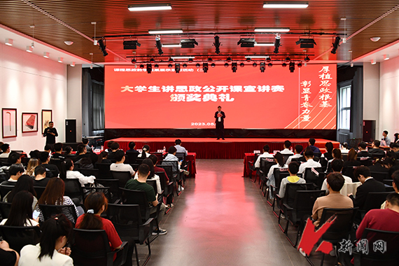 5月12日,时博足球_时博(中国)举办“厚植思政根基、彰显青春力量”大学生讲思政课公开课宣讲赛。校长张志强到会并讲话。校党委常委、副校长李胜利宣读了获奖名单。张志强、李胜利及教务处、马克思主义学院、建筑与艺术设计学院负责同志为获奖同学颁发证书。2022年国家级大学生讲思政课优秀奖获得者,材料2019.2班马祉怡同学主持宣讲赛。
