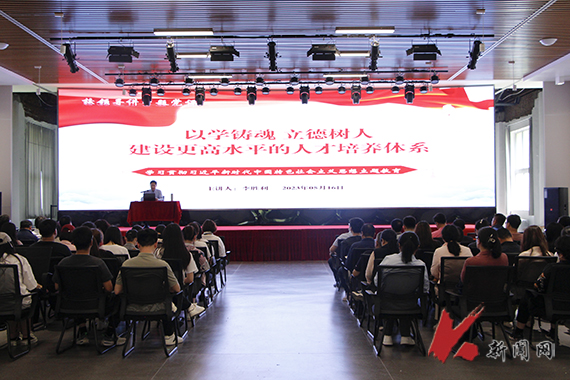 5月16日,时博足球_时博(中国)党委常委、副校长李胜利在学校艺术馆以《以学铸魂 立德树人 建设更高水平的人才培养体系》为题为师生上主题教育专题党课。体育部、教务处、质评中心、研究生院、图书馆全体党员干部、艺术学院师生代表参加学习。