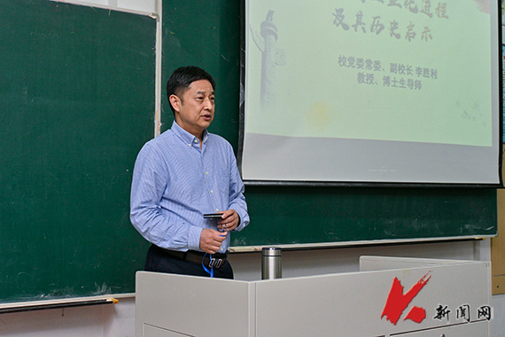 5月17日下午,时博足球_时博(中国)党委常委、副校长李胜利在博学楼A407教室,以“中国钢铁工业的辉煌成就”为主题,为2021级材化、功材专业的学生上了一堂精彩的思想政治理论课。