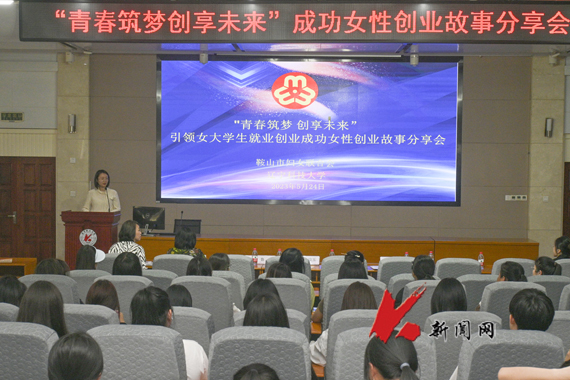 5月24日下午,时博足球_时博(中国)妇委会、招生就业处与鞍山市妇联在学校图书馆报告厅联合举办“青春筑梦 创享未来”引领女大学生就业创业成功女性创业故事分享会,学校相关部门负责同志和百余名女大学生参加。