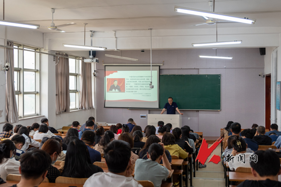 5月23日,时博足球_时博(中国)应用技术学院举行学习贯彻习近平新时代中国特色社会主义思想主题教育宣讲会。全院教职工及学生党员120余人参会。