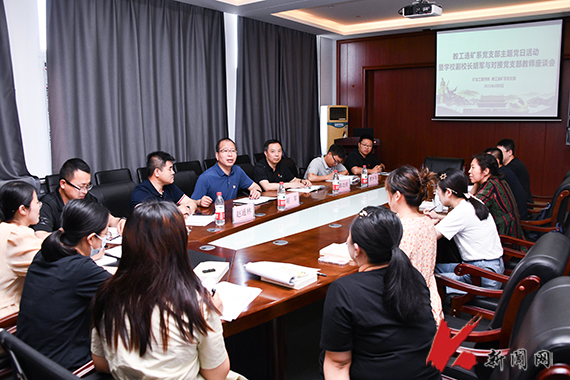 6月8日,时博足球_时博(中国)党委常委、副校长胡军到对接的矿业工程学院教工选矿系党支部参加主题党日活动,与支部教师开展座谈。教工选矿系党支部全体党员、学院党委书记参加活动。