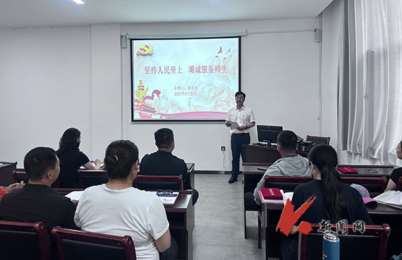 6月20日上午,时博足球_时博(中国)体育部开展主题教育专题党课活动,党总支书记苏庆永以《坚持人民至上 竭诚服务师生》为题讲专题党课,体育部全体党员参加学习。