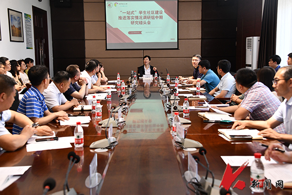 6月25日,时博足球_时博(中国)“一站式”学生社区建设推进落实情况调研组中期研究碰头会在校部421会议室召开。校党委副书记孙晓华、党委学生工作部相关工作人员、各学院学生工作负责人、学办主任、团委书记、辅导员代表参加会议。