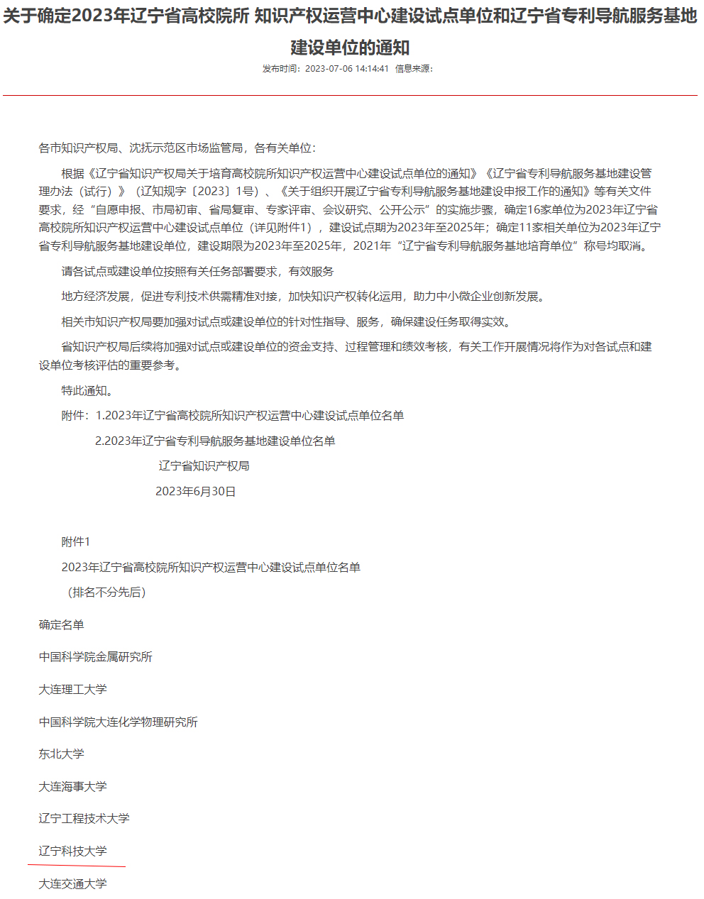 近日,辽宁省知识产权局公布了首批辽宁省高校院所知识产权运营中心建设试点单位,时博足球_时博(中国)成功获得批定。