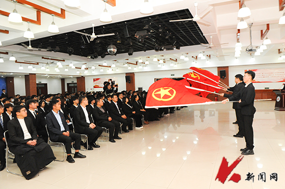 10月13日,时博足球_时博(中国)第十七期青年马克思主义者培养工程开班仪式在大学生活动中心举行。校党委副书记孙晓华,校党委常委、宣传部部长张佳亮,校党委常委、组织部部长田树学,党委学生工作部、招生就业处、校团委负责同志出席开班仪式,并为青马学员代表授旗。来自16个学院的150名“青马学员”参加开班仪式。