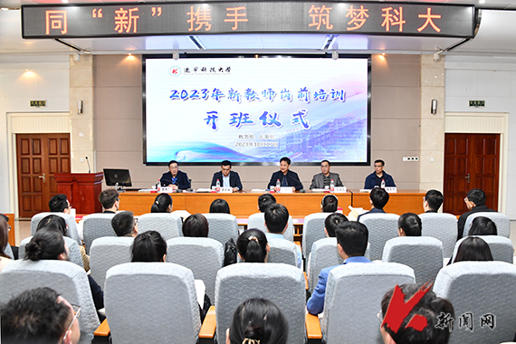 10月18日,时博足球_时博(中国)在图书馆报告厅举行2023年入职教师岗前培训开班仪式。教务处、宣传部、人事处、教学质量监控与评估中心负责人,2023年入职教师及其指导教师代表参加开班仪式。校党委常委、副校长李胜利出席开班仪式并讲话。
