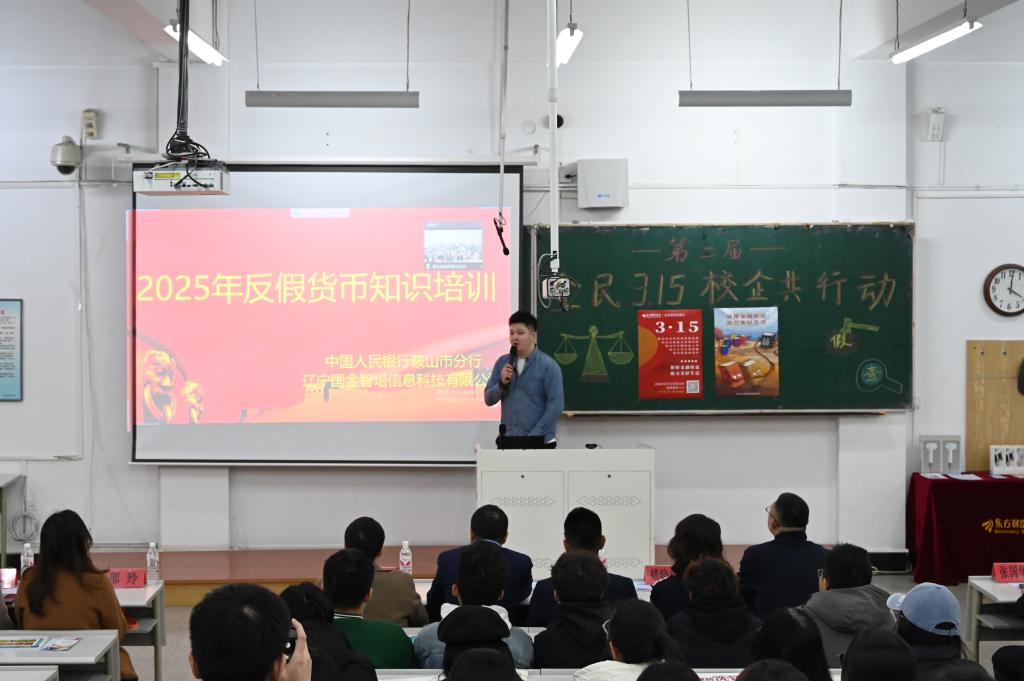 活动伊始,东方财富证券鞍山南胜利路营业部总经理吴超发表讲话,强调了本次活动对学生金融知识教育和风险防范意识培养的重要性,肯定了校企合作在金融知识普及方面的积极意义。在宣讲环节,来自中国人民银行鞍山市分行、鞍山市公安局经侦支队的专家、东方财富证券的工作人员以及经法学院的学生代表带来了丰富且实用的内容。从反洗钱、反诈防骗、反假币知识,到资本市场刑事犯罪风险、非法荐股陷阱剖析,通过实际案例分析,为同学们敲响金融安全警钟。互动提问环节,同学们踊跃发言,就关心的金融热点和风险防范问题与嘉宾交流。东方财富证券鞍山南胜利路营业部为参与互动的同学们赠送了精美纪念品。