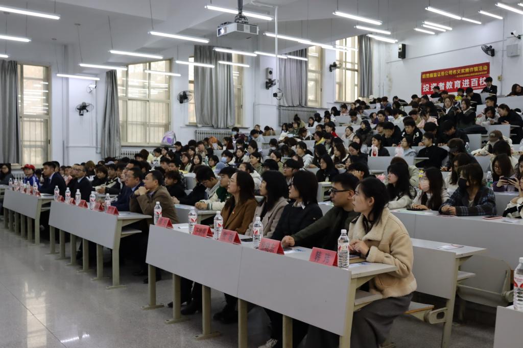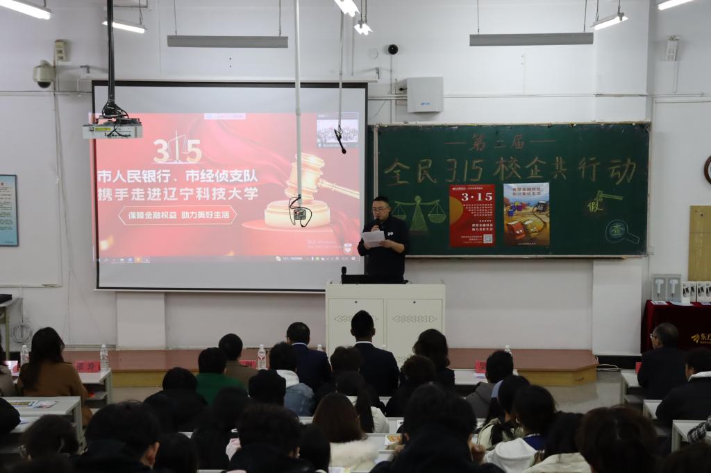 3月14日,经法学院携手东方财富证券鞍山营业部在博学楼C102开展第二届“全民3.15,校企共行动”主题活动。东方财富证券鞍山南胜利路营业部及中国人民银行鞍山市分行、鞍山市公安局经侦支队金融大队一行15人、经法学院党政领导及辅导员7人出席活动,学院近270名学生参加了本次活动。