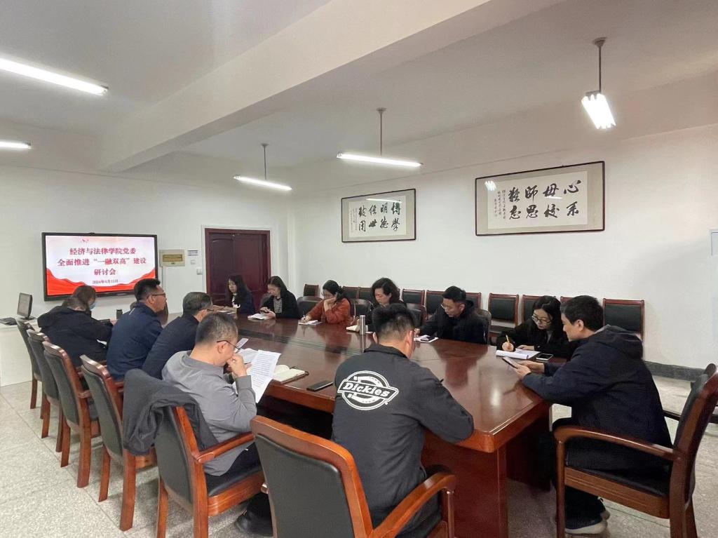 为贯彻落实学校党委关于全面推进“一融双高”建设的指导意见,4月15日,经法学院在博识楼A305召开推进“一融双高”建设研讨会。会议由院长郭浩淼主持,学院党委成员、党支部书记和系主任参加会议。