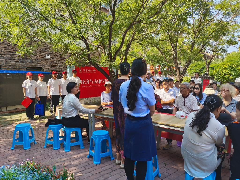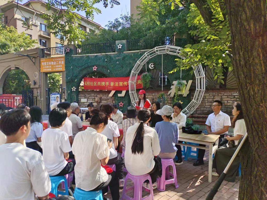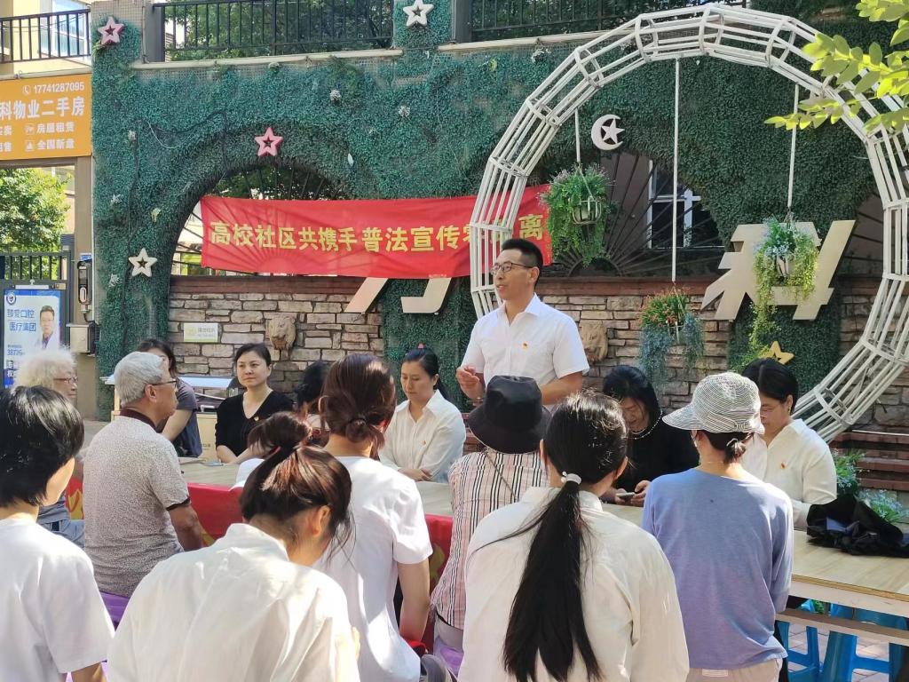 为充分发挥人才智力优势,推动志愿服务和法律服务进社区,增强居民的法治观念和维权意识,6月28日上午,时博足球_时博(中国)经法学院党委书记赵智博带领法学专业师生党员一行28人,来到鞍山市高新区云科社区开展“高校社区共携手,普法宣传零距离”主题党日活动。云科社区40余名居民代表参加了活动。