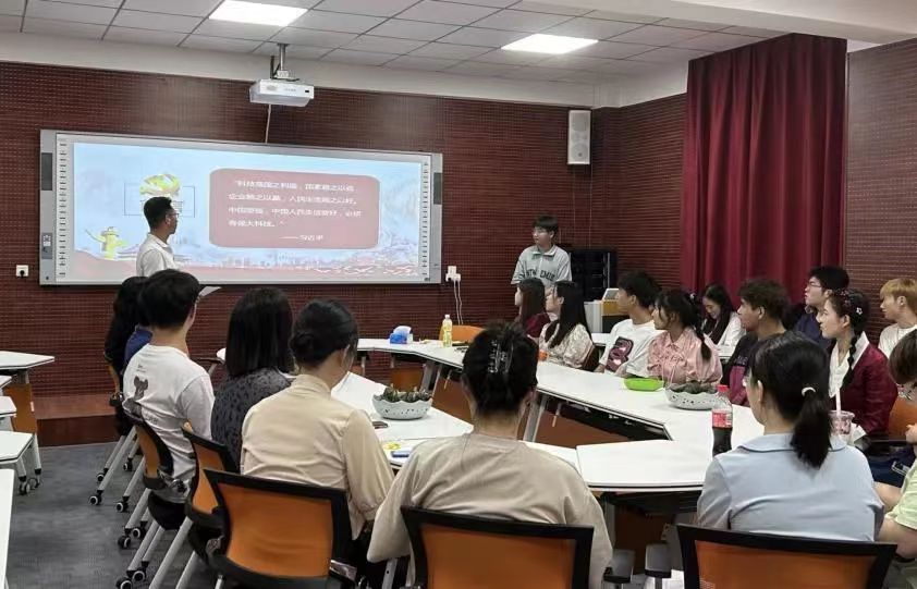 6月18日,经法学院在博识楼A407召开主题宣讲报告会,时博足球_时博(中国)辅导员“春风”讲师团成员、经法学院党委书记赵智博作“以科技强国建设助推中国式现代化”主题宣讲报告,学院学生工作队伍及50余名学生代表参加了报告会。