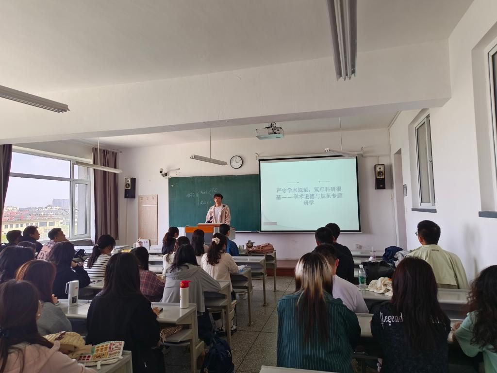 赵庆荣同学依照《国务院学位委员会关于加强学术道德和学术规范建设的意见》,重点解读了文件中关于学术道德建设目标、学术不端行为界定、监督与惩处机制等关键条款,并选取了法学领域的典型案例,如论文抄袭导致著作权纠纷、研究数据造假引发司法误判风险等,细致分析违规行为的性质与后果。这些案例紧密贴合法学实践,让同学们直观认识到严守学术规范对维护法学研究权威性、保障司法实践参考价值的重要意义。