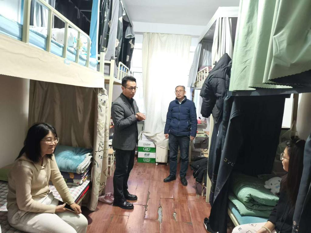 11月22日,学院党委书记赵智博、党委副书记张国华、团委副书记张鹏飞及研究生辅导员贺伟,带领学院自管会和研究生会成员深入学生寝室开展安全隐患大排查工作。