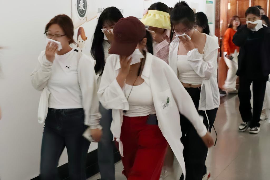 演练前,学院辅导员深入班级开展消防安全主题教育班会,结合相关案例向学生普及火灾危害、预防措施、扑救方法及逃生技巧等知识,并组织观看安全教育视频,为演练做好充分准备。随着警报声响起,演练正式开始。本次演练模拟了教学楼突发火灾的情景,师生们迅速反应,用湿毛巾捂住口鼻,弯腰低姿,按照预定疏散路线有序撤离至博雅广场安全区域。整个过程紧张有序,师生们行动迅速、配合默契。应急分队成员现场教学,向师生们详细讲解灭火器的正确使用方法,让在场师生清晰掌握灭火器实操要点。最后,校保卫处姜鑫处长对活动进行总结,强调消防安全工作是校园安全的重中之重,必须常抓不懈。同时鼓励广大师生持续加强消防安全知识的学习,不断提升应急处置技能,真正将安全意识内化于心、外化于行。
