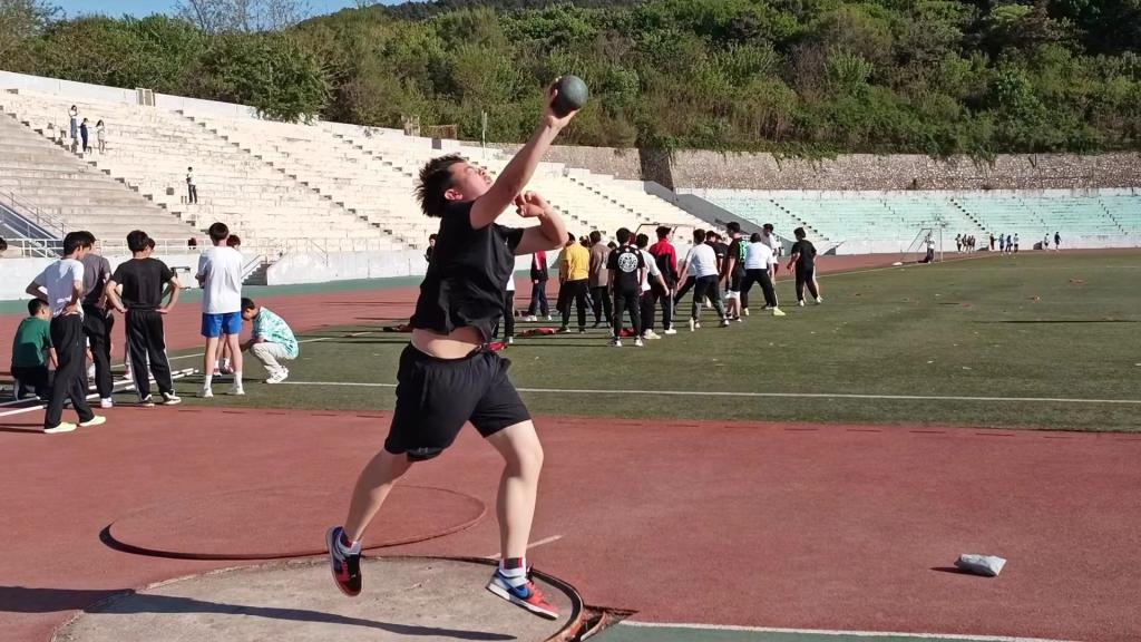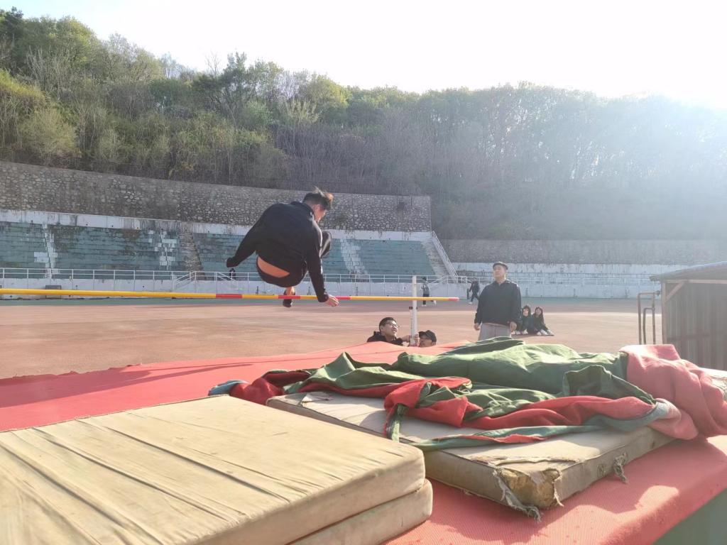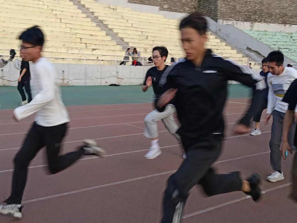 在运动场上积极备战、挥洒汗水
