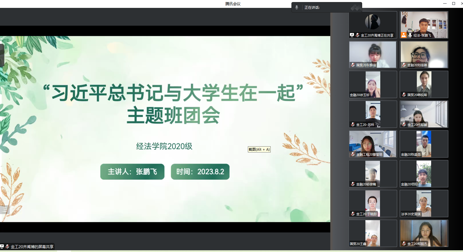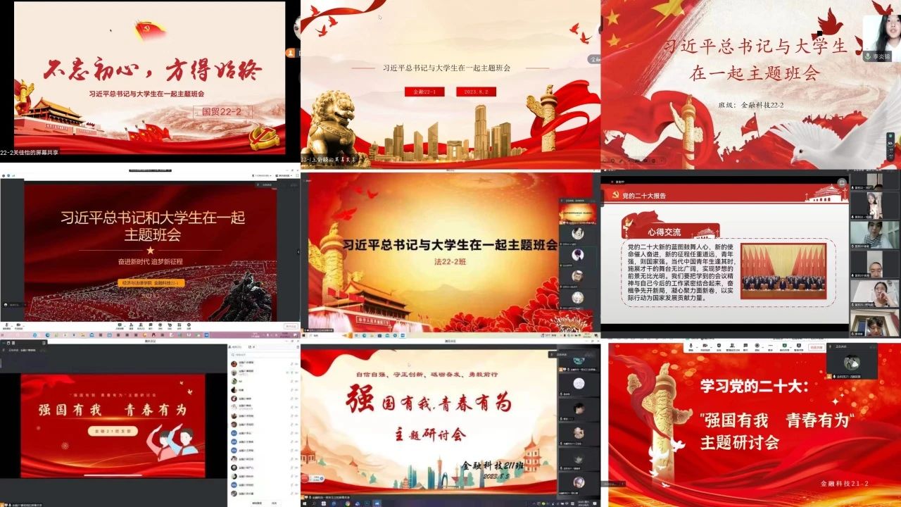 为加强青年学生的理论武装,传承红色基因,提高政治素质,近日经法学院20级、21级、22级各班分别于线上开展“习近平总书记与大学生在一起”学习分享系列活动,通过领学共学,引导学生读原著学原文悟原理,全面学习领会习近平新时代中国特色社会主义思想。