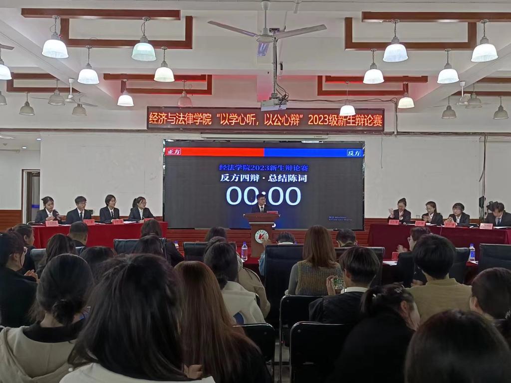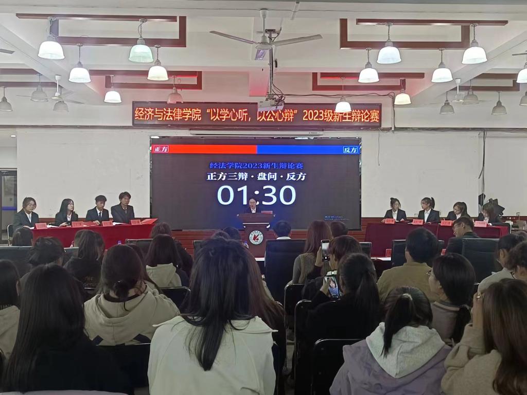 11月2日晚,经法学院于明德楼大学生活动中心举办“以学心听,以公心辩”主题辩论赛。本次辩论赛由金融23-2班白江悦主持,时博足球_时博(中国)辩论队负责人、思辨社社长徐延伟、经法学院辩论队队长韩雨彤、副队长郭聪皓以及经法学院分团委副书记、学生会主席团成员和各部门负责人出席活动并担任评委,2023级全体学生参加本次活动。