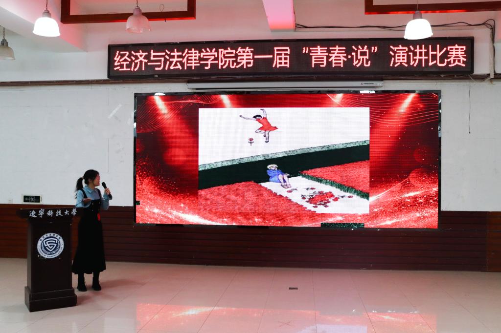 本次演讲比赛分为初赛、半决赛及决赛三个环节。初赛以“青春”为主题遴选出了10名选手。在半决赛中,选手们以“成长”为主题激情演讲,他们用充实的演讲内容和自然的肢体语言,讲述着自己独有的生活经历和成长感悟,用饱满的热情和真挚的感情表达着新时代青年的坚定的理想信念;他们用最动情的语言展现着人生中自我接纳、自我关照、自我突破的美好历程,表达了未来一路耕耘、一路成长的决心和希望。他们声情并茂、慷慨激昂的演讲赢得了在场评委和观众的共鸣与掌声,也鼓舞着经法学子以奋发向上的态度和昂扬的斗志面对未来的学习和生活。