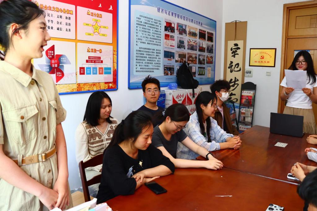 5月17日,经法学院于知行居103党团活动室开展“一站式”学生社区沙龙--“正视自我价值,找寻人生航向”主题活动。本次活动由学院学生会生活权益部干事王乔诗主持,2023级共17名学生参加活动。