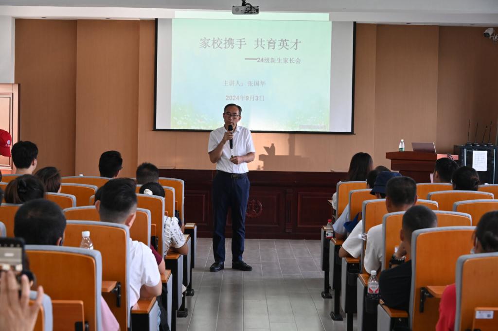 2024级新生辅导员张鹏飞鼓励家长们积极参与到孩子的成长过程中来,以身作则,注重培养孩子的道德品质和社会责任感,引导孩子树立正确的价值观和人生观。他表示,希望学生们在学院和家长的共同引导下都能够合理安排大学四年的学业规划,积极参与社会实践和志愿服务活动,拓宽视野,增长见识,提升综合素质,为自己的未来打下坚实基础。